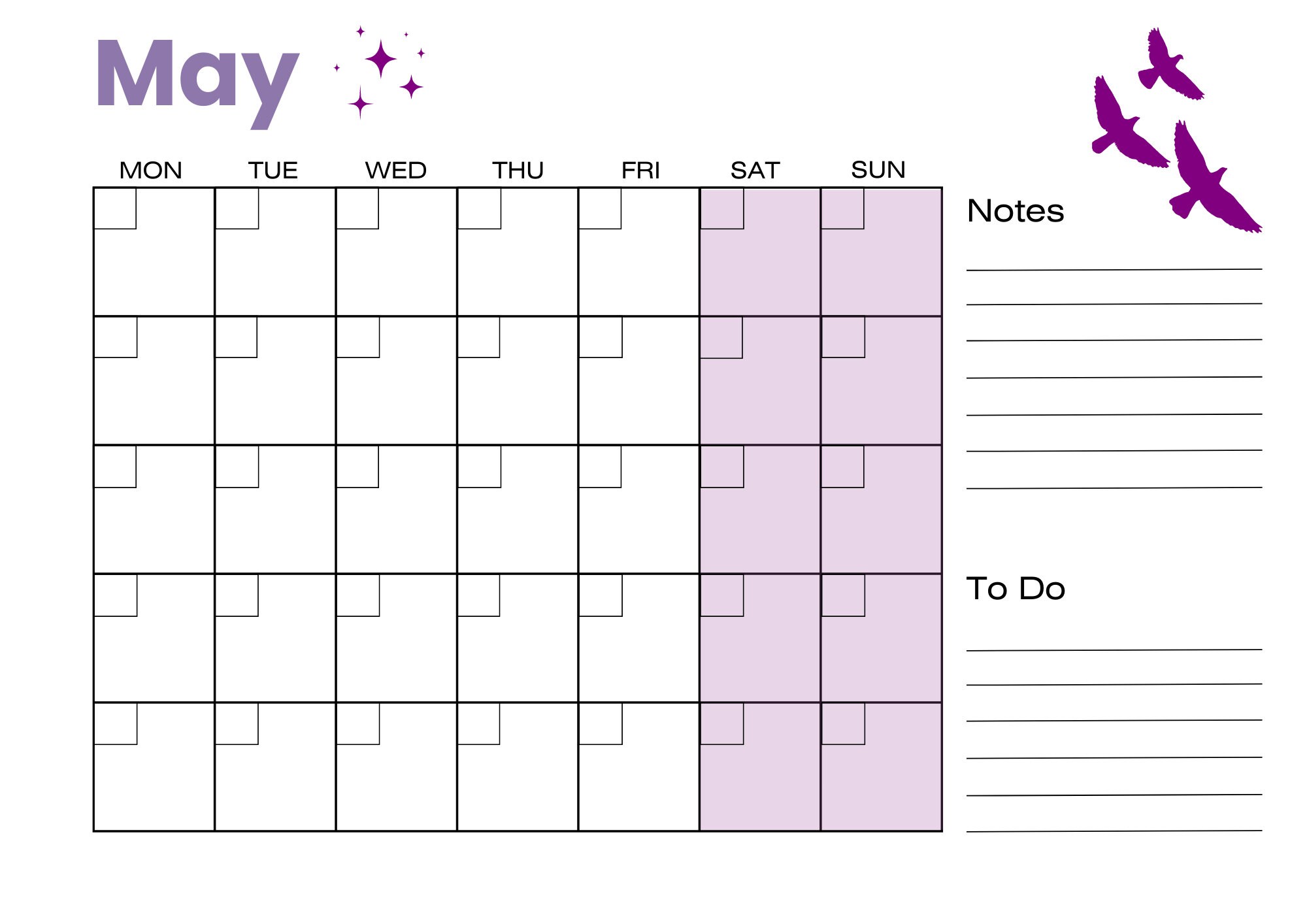 Printable Blank Calendar for Your Planner