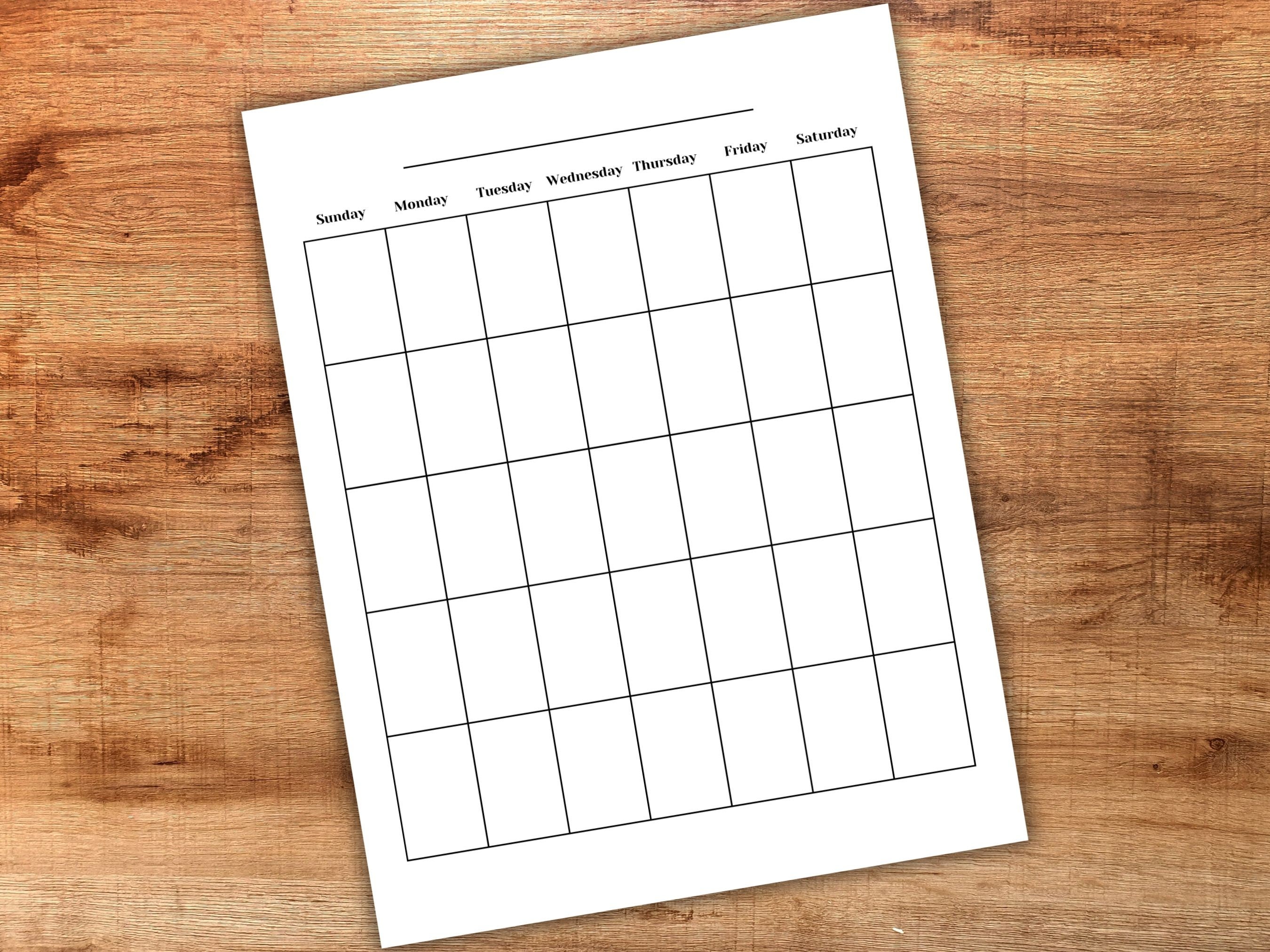 Blank Calendar Printable Page Ready to Print Calendar DIY Calendar