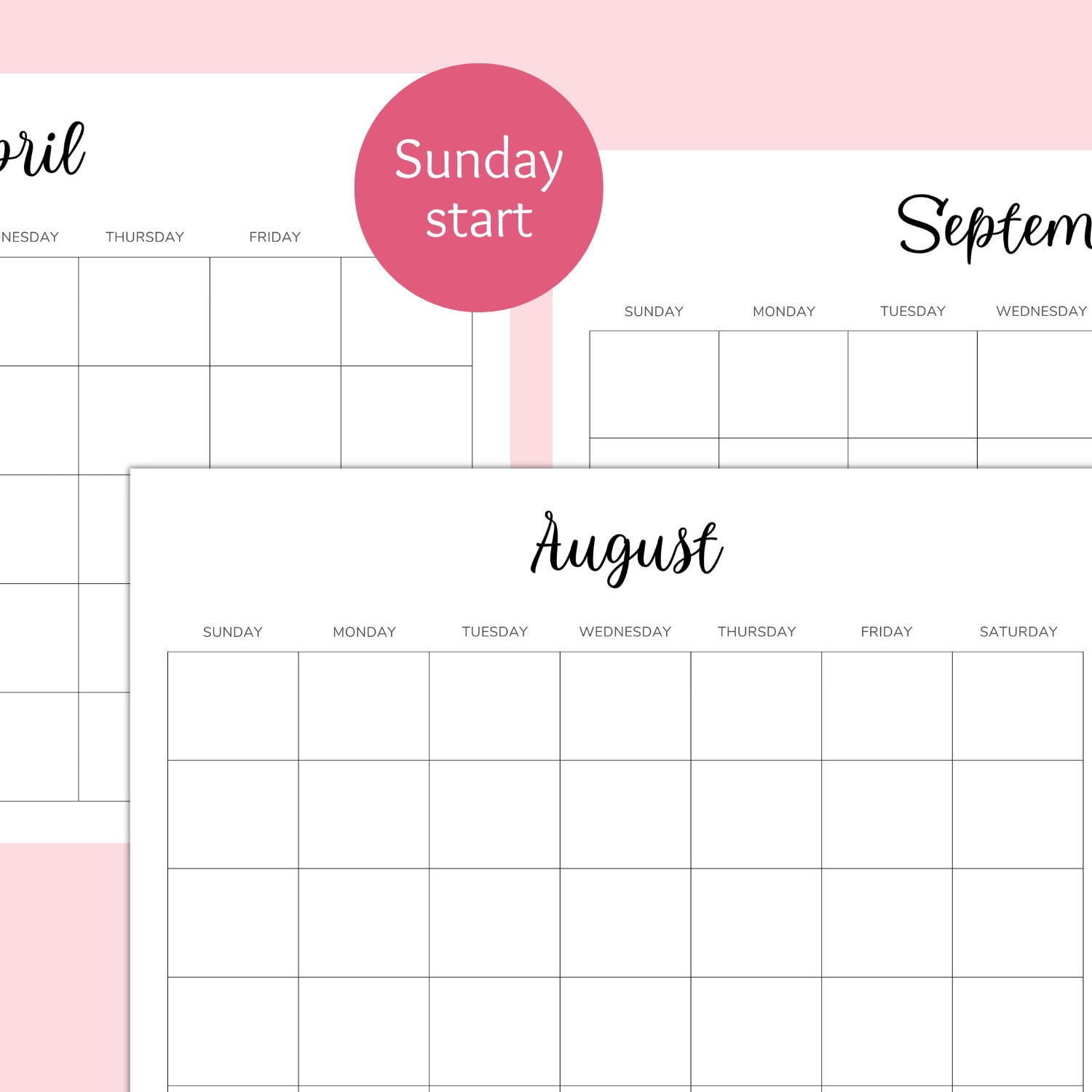 Blank Calendar Template Etsy