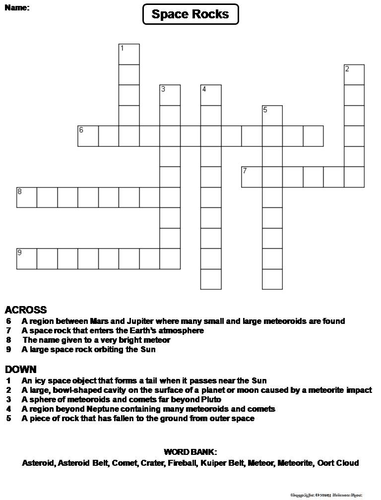 Science Crossword Puzzle: 3 to 6 Grades Earth Space Asteroids Comets