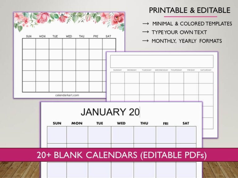 10 Free Printable Blank Calendars (Editable PDF)