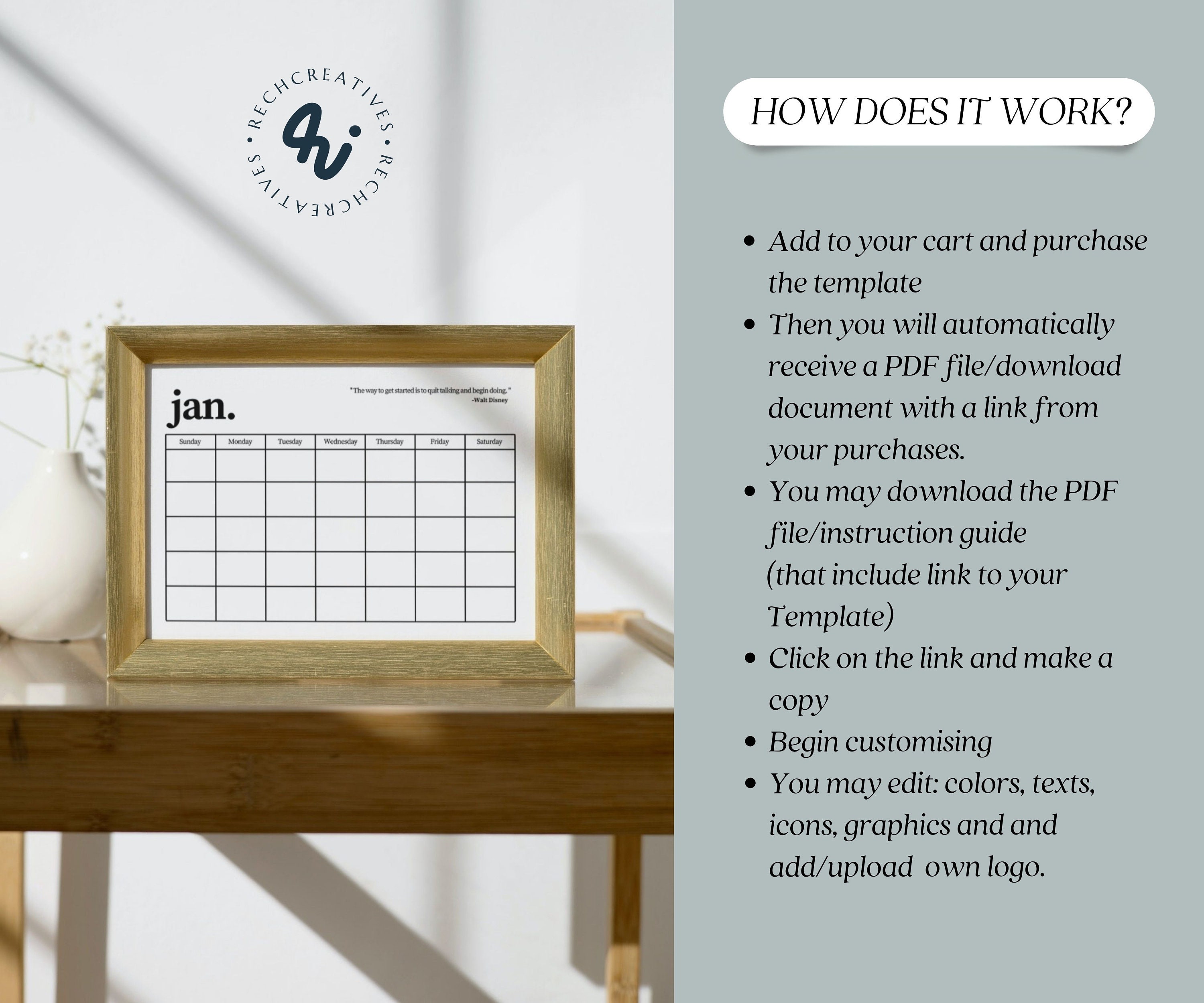 Blank EDITABLE Calendar Template Craft Commercal Use Digital Download