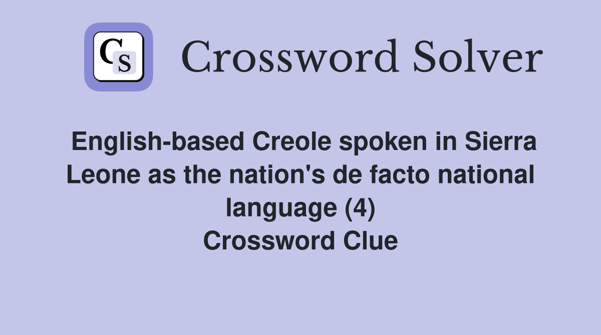 English based Creole spoken in Sierra Leone as the nation s de facto