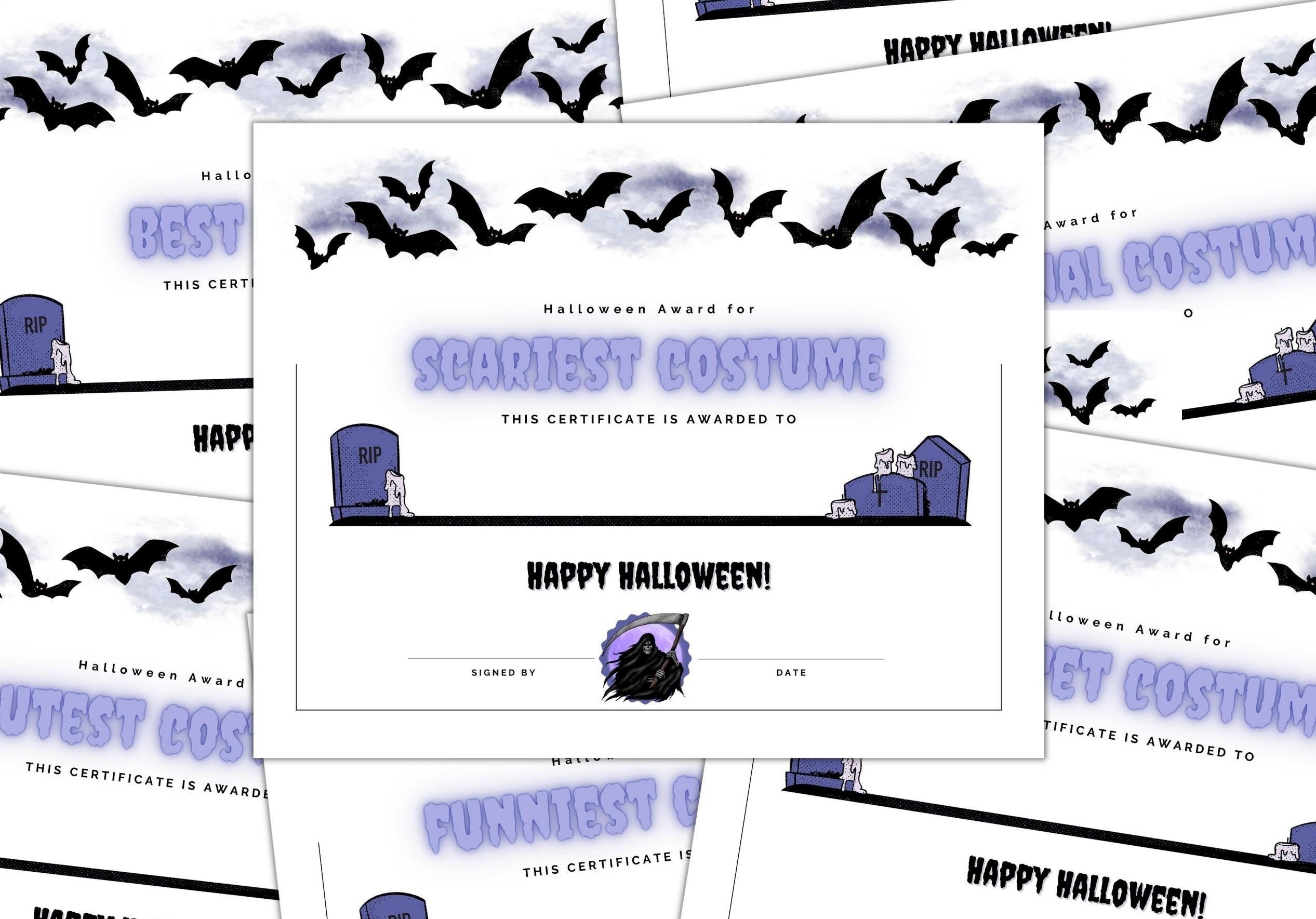 Blank Halloween Award Certificate Printable Best Costume Etsy