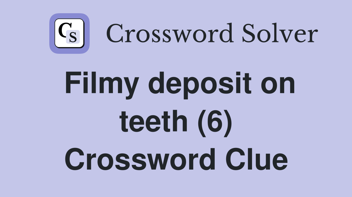 Filmy deposit on teeth (6) Crossword Clue Answers Crossword Solver