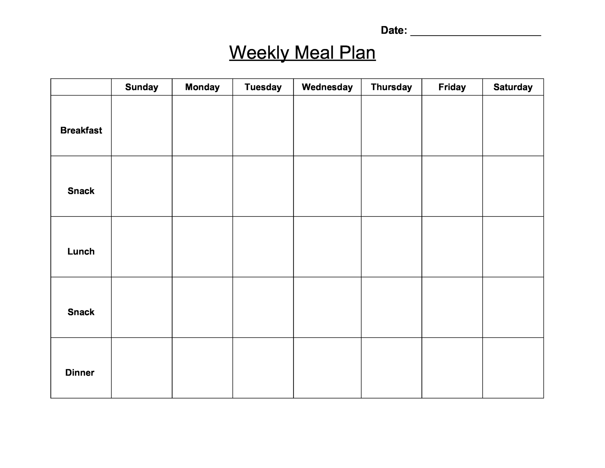 Blank Meal Plan Template