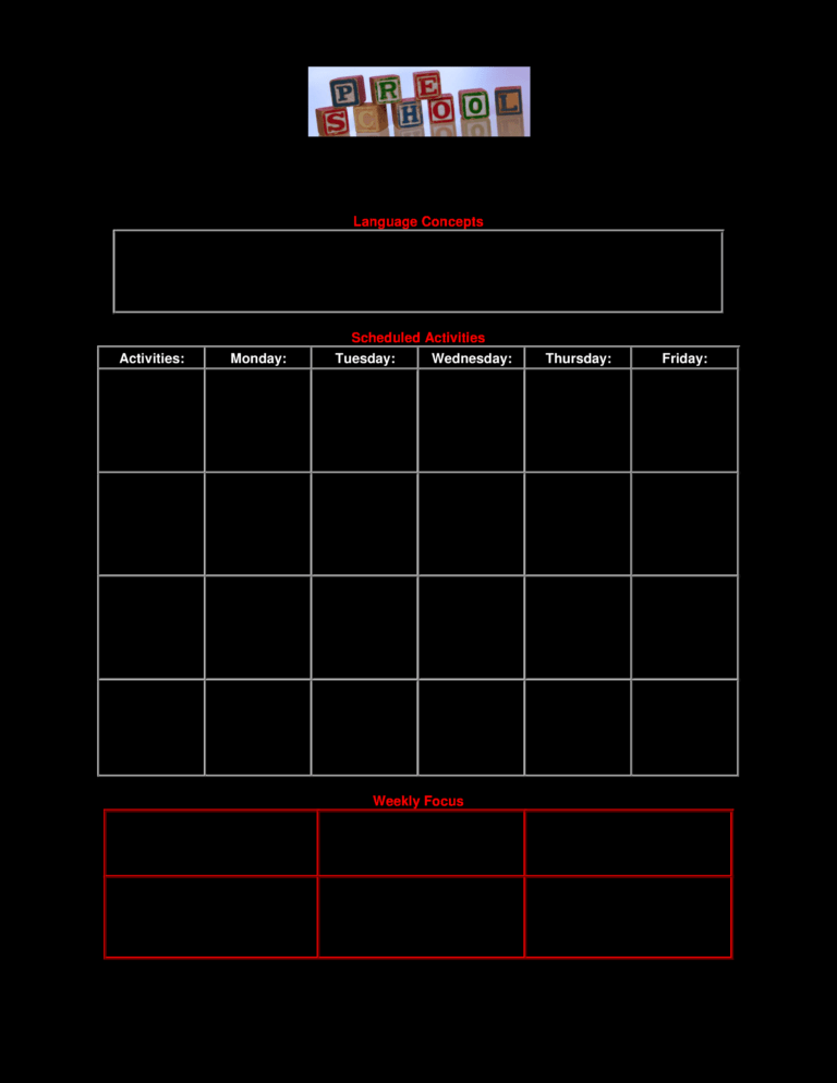 Blank Preschool Lesson Plan Template