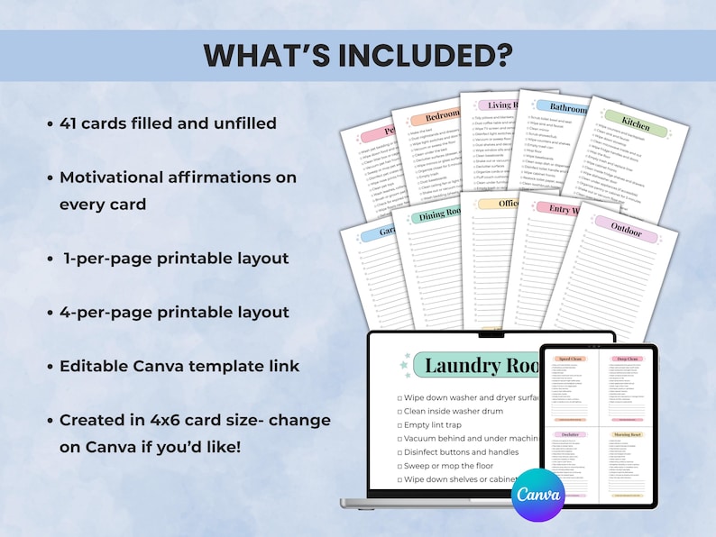 Editable Cleaning Cards Printable Chore Chart ADHD Cleaning Checklist