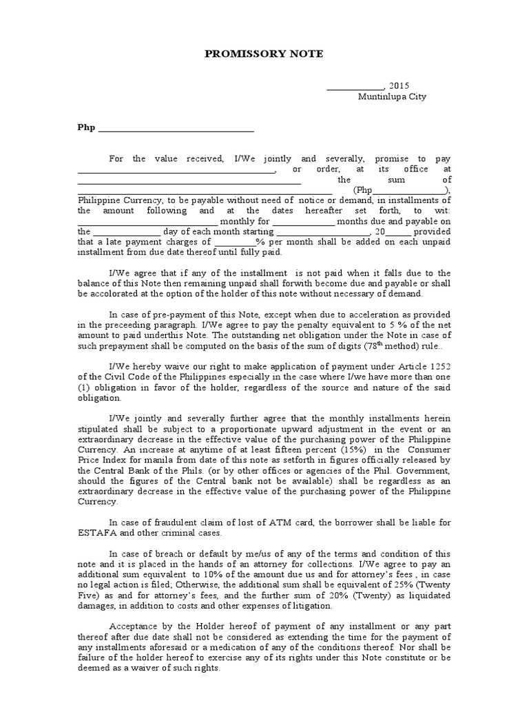 PROMISSORY NOTE agreement Blank PDF Payments Banks