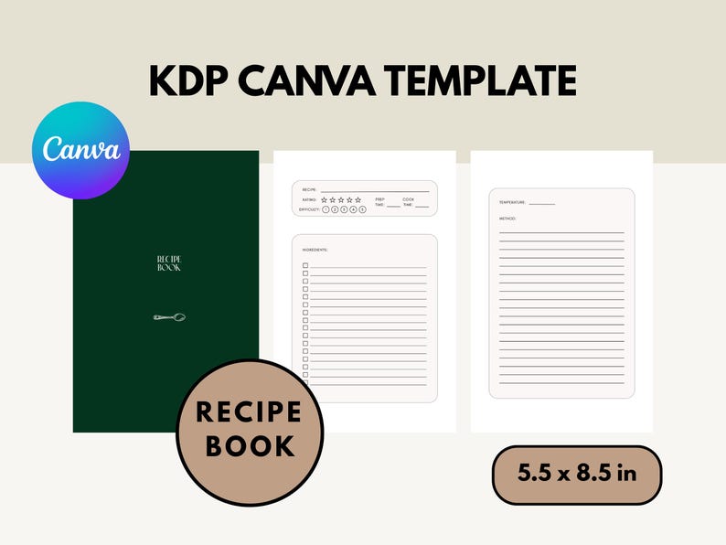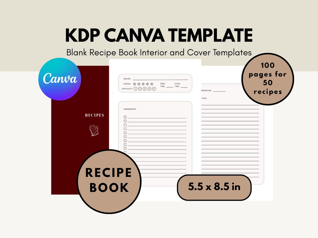 KDP Blank Recipe Book Canva Template 100 Pages 5 Covers (5 5 X 8 5