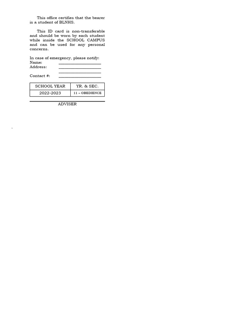 Printable Temporary Id Template