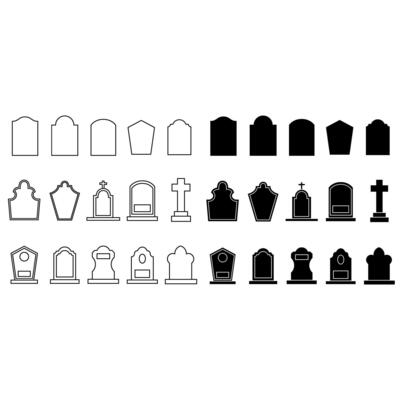 Tombstone silhouette set for halloween Gravestone cemetery collection