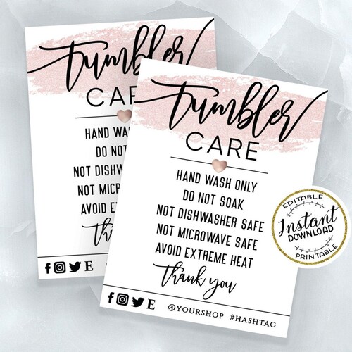 TUMBLER Care Card Template Simple Editable Printable Tumbler Etsy