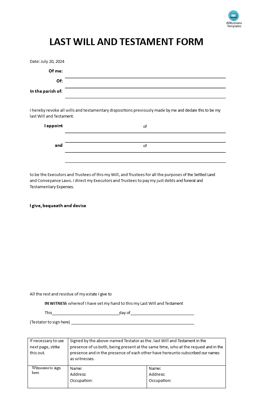 Here are some of the images for Blank Will Template To Print that we found in our website database.