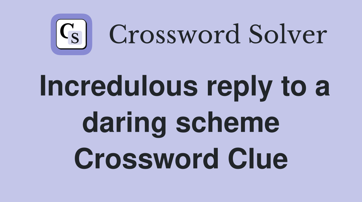 Incredulous reply to a daring scheme Crossword Clue Answers
