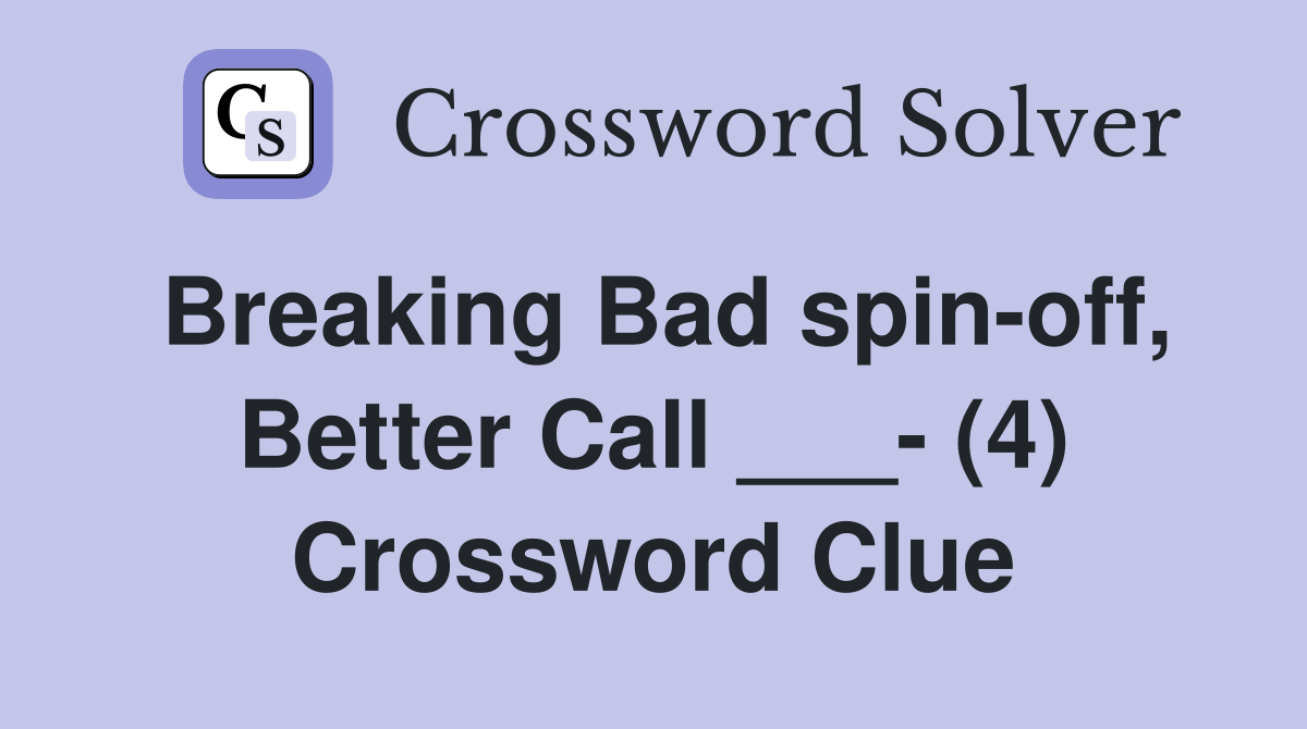 Breaking Bad spin off Better Call (4) Crossword Clue Answers