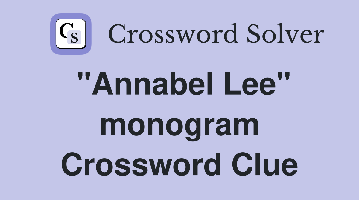 quot Annabel Lee quot monogram Crossword Clue Answers Crossword Solver