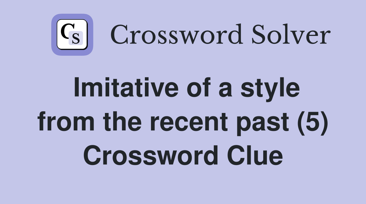 Imitative of a style from the recent past (5) Crossword Clue Answers