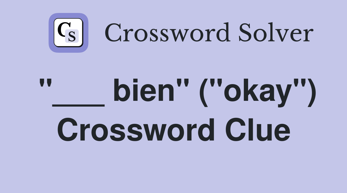 bien quot ( quot okay quot ) Crossword Clue Answers Crossword Solver