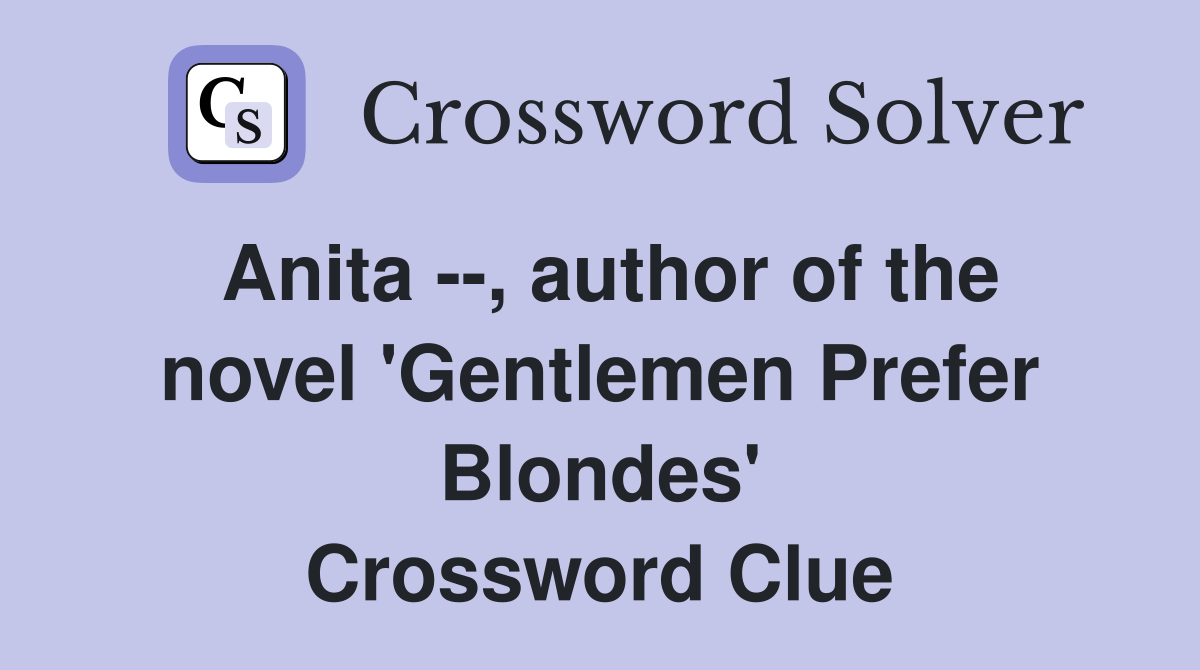 Anita author of the novel Gentlemen Prefer Blondes Crossword