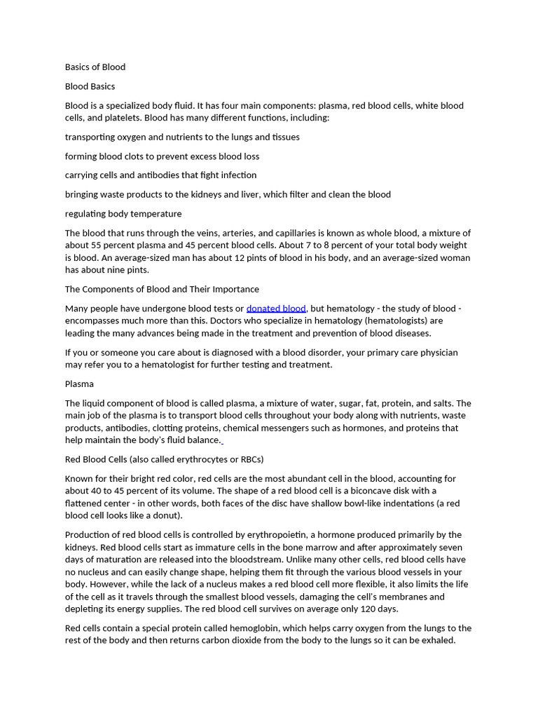 Blood Basics: 1 What Makes Up The Blood in Our Bodies? PDF Blood