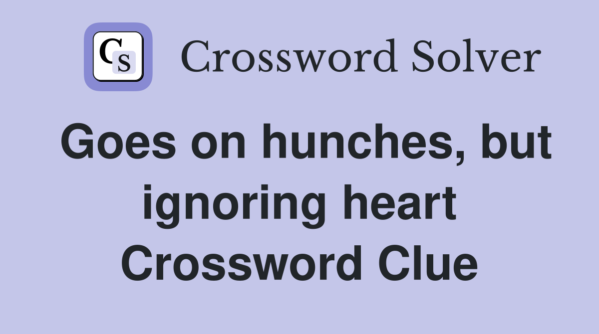 Goes on hunches but ignoring heart Crossword Clue Answers