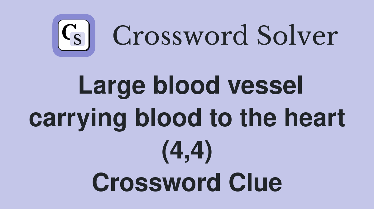 Large blood vessel carrying blood to the heart (4 4) Crossword Clue