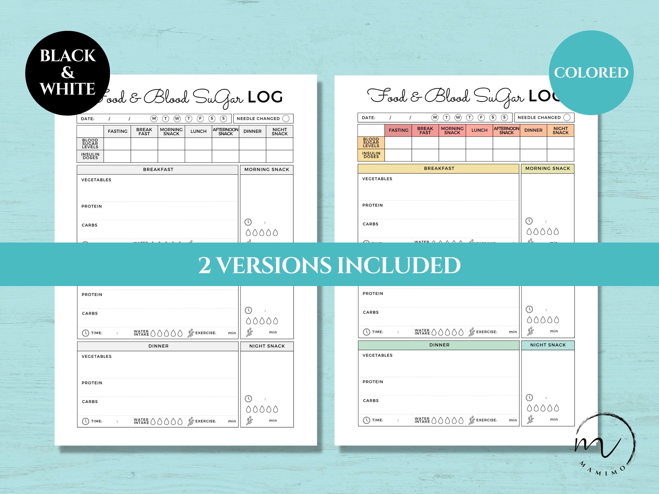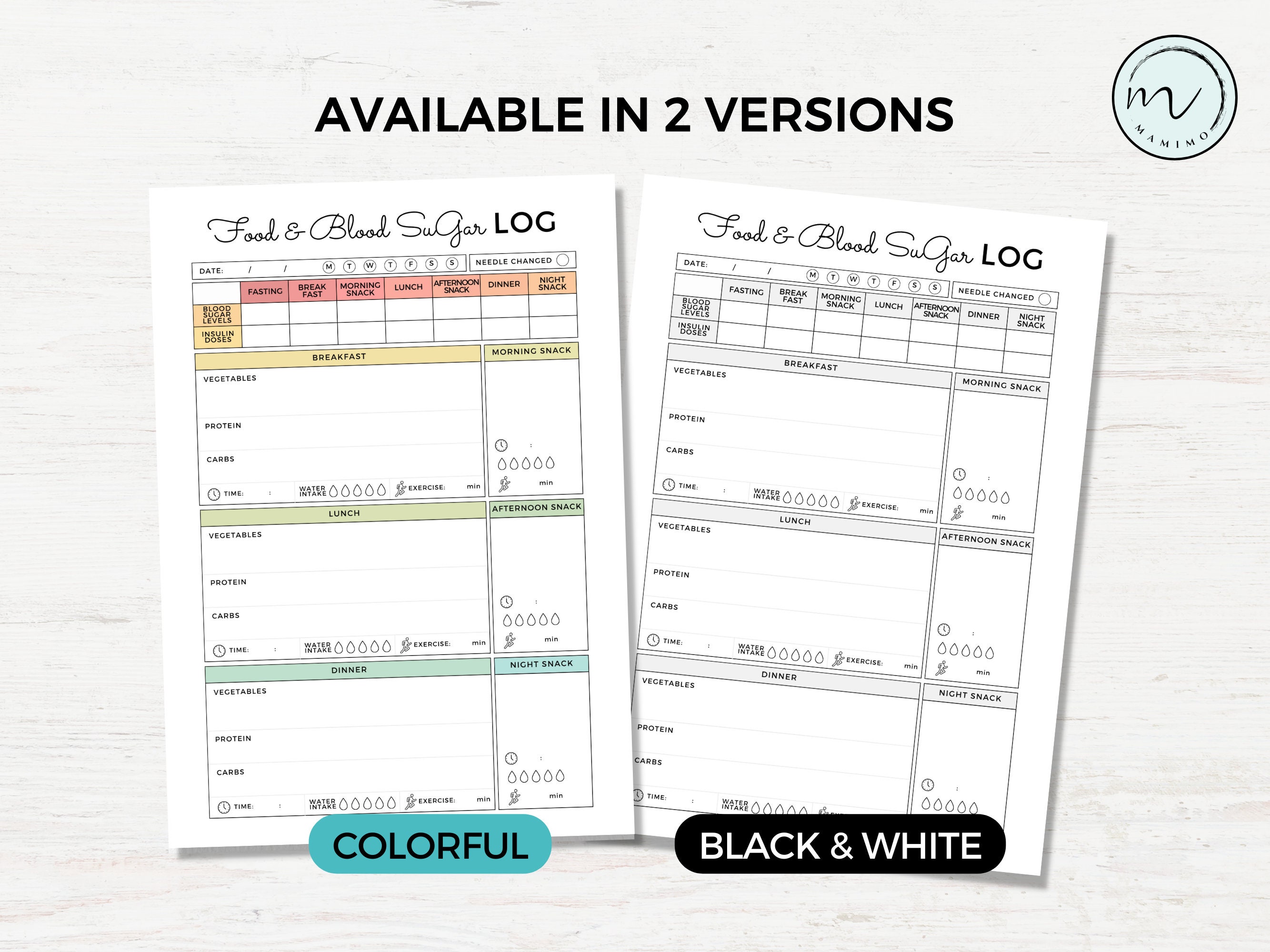Blood Sugar Log Editable Printable Breakfast Lunch Dinner and