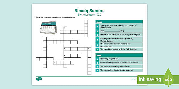Bloody Sunday 1920 Crossword (Teacher Made) Twinkl