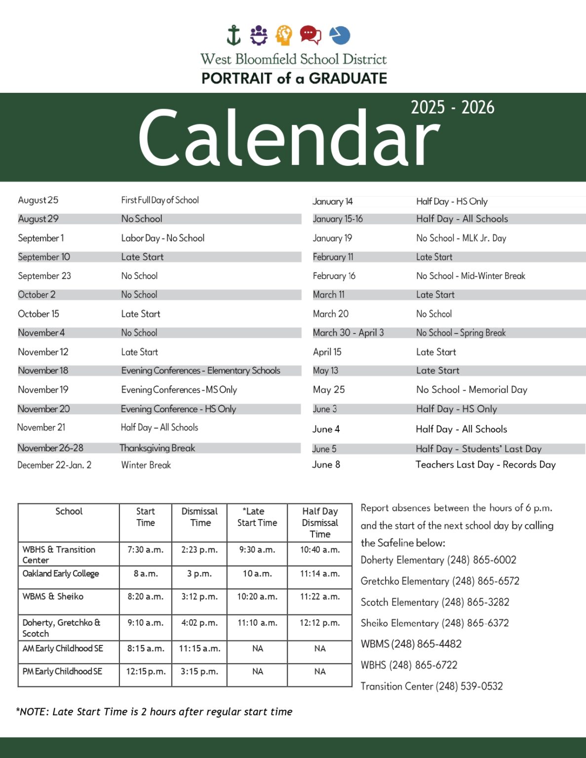 West Bloomfield School District MI Calendar 25 26 Revised pdf EduCounty