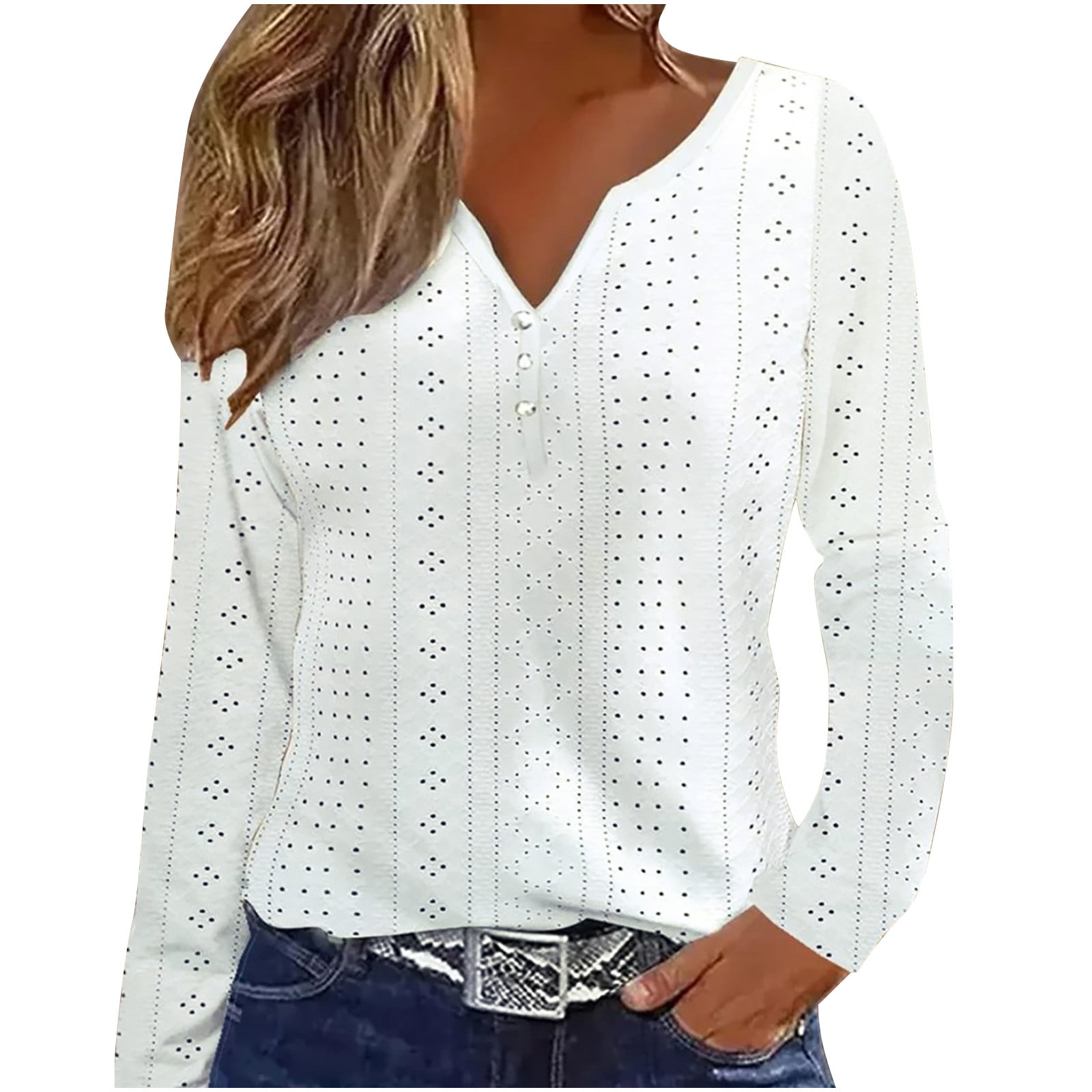 Blmnix Textured Women Blouses Long Sleeve V Neck Solid Blouse Blouse