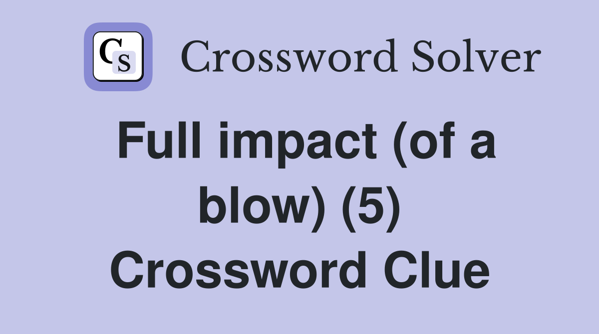 Full impact (of a blow) (5) Crossword Clue Answers Crossword Solver