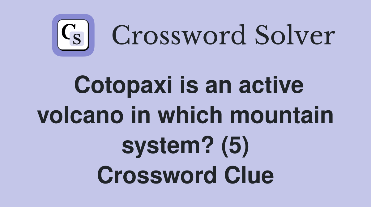 Cotopaxi is an active volcano in which mountain system? (5) Crossword