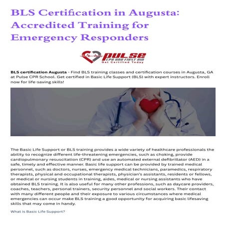 BLS Near Me Top BLS Certification Augusta GA Pulse CPR
