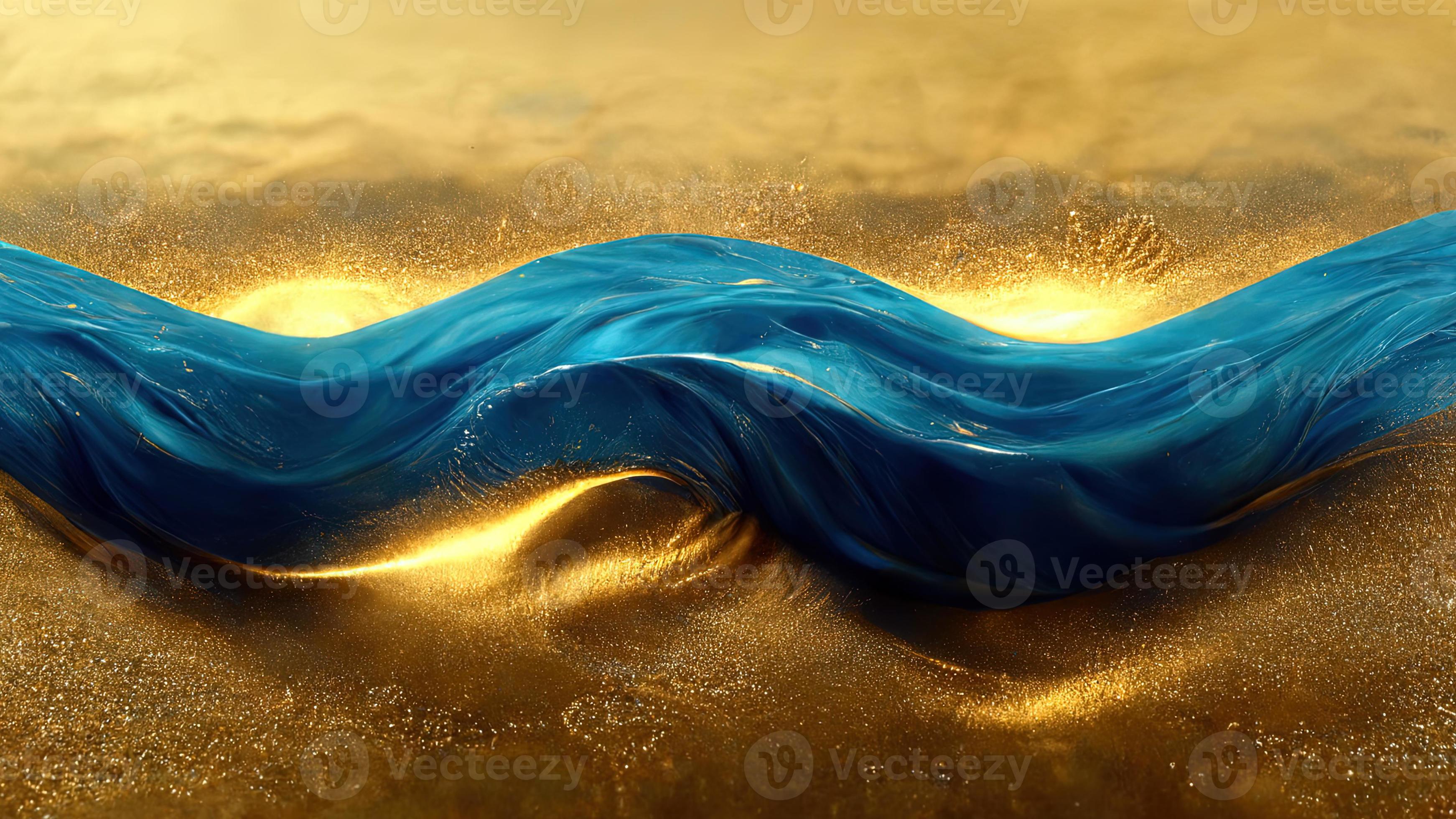 Blue wave with gold sparkles in a gold ring Beautiful sea background