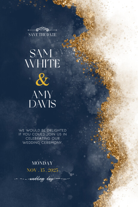 Navy Blue and Gold Sand Elegant Wedding Invitation Template PosterMyWall