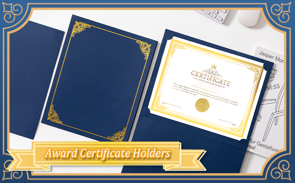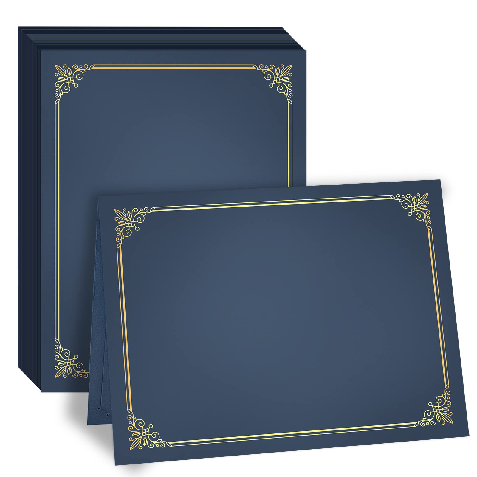 SUNEE 50 Packs Blue Certificate Holders with Gold Foil Border