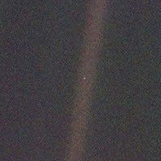 Pale Blue Dot photo of Earth taken by Voyager 1 in 1990 as it left the