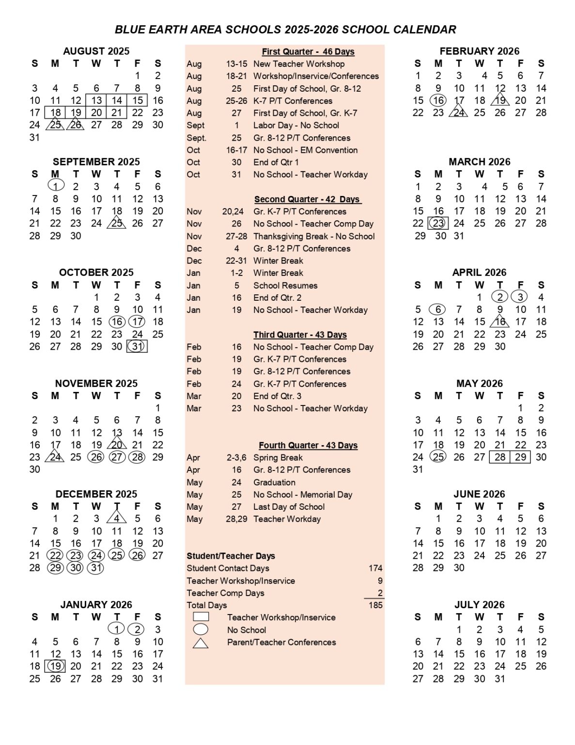 BLUE EARTH AREA mn SCHOOLS 25 26 Calendar pdf EduCounty