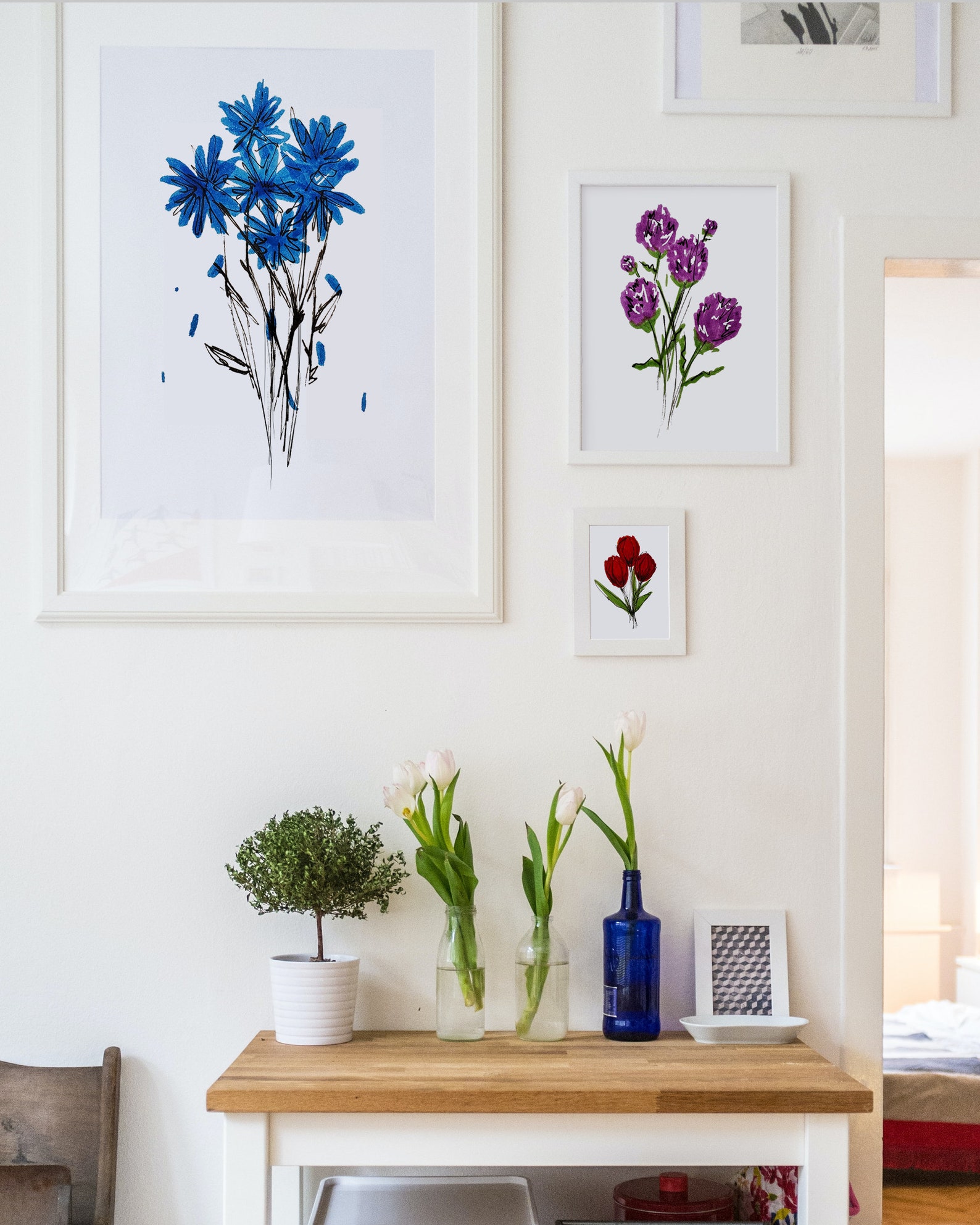 Blue Flower Printable Wall Art Decor Vintage Painting Illustration