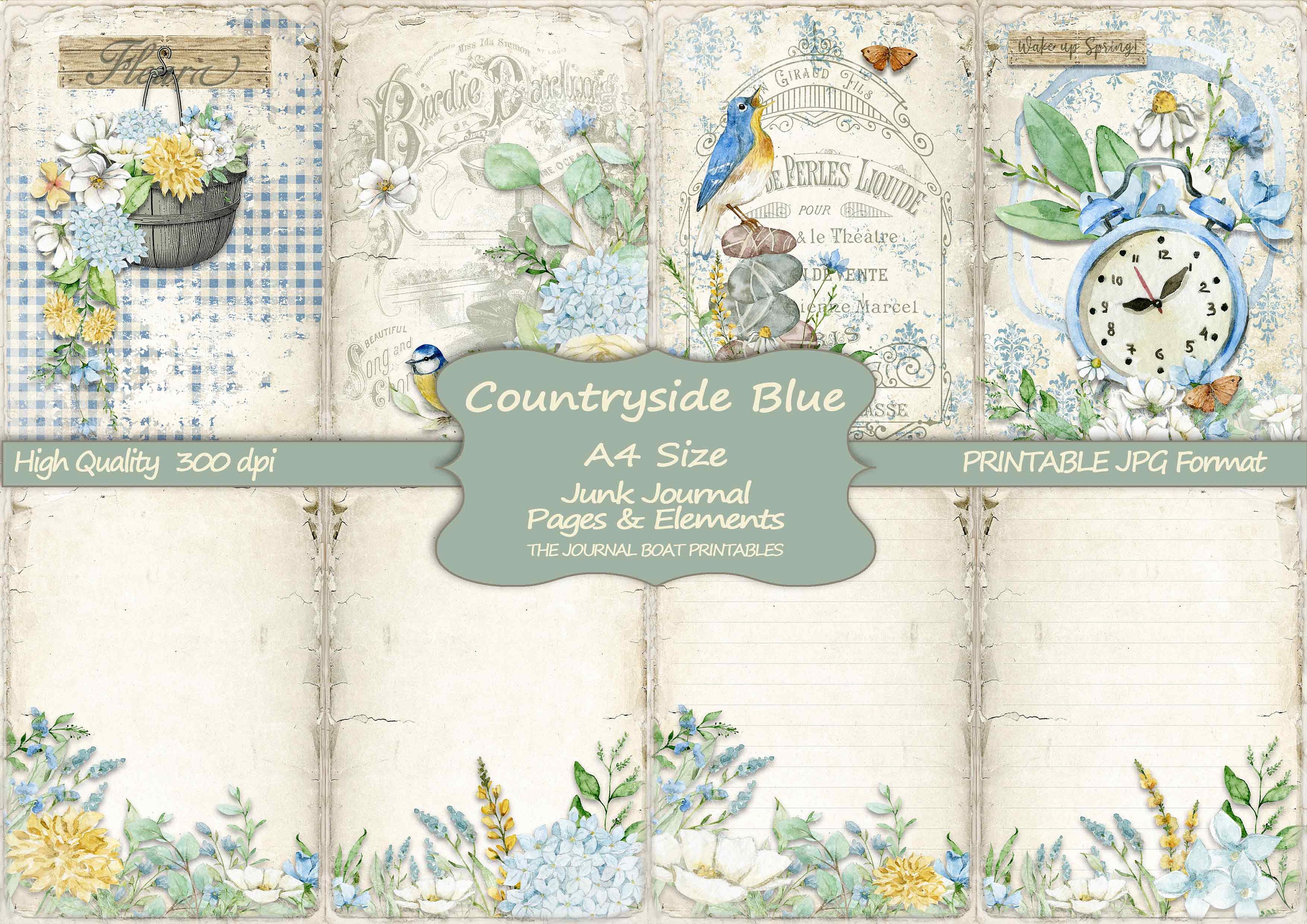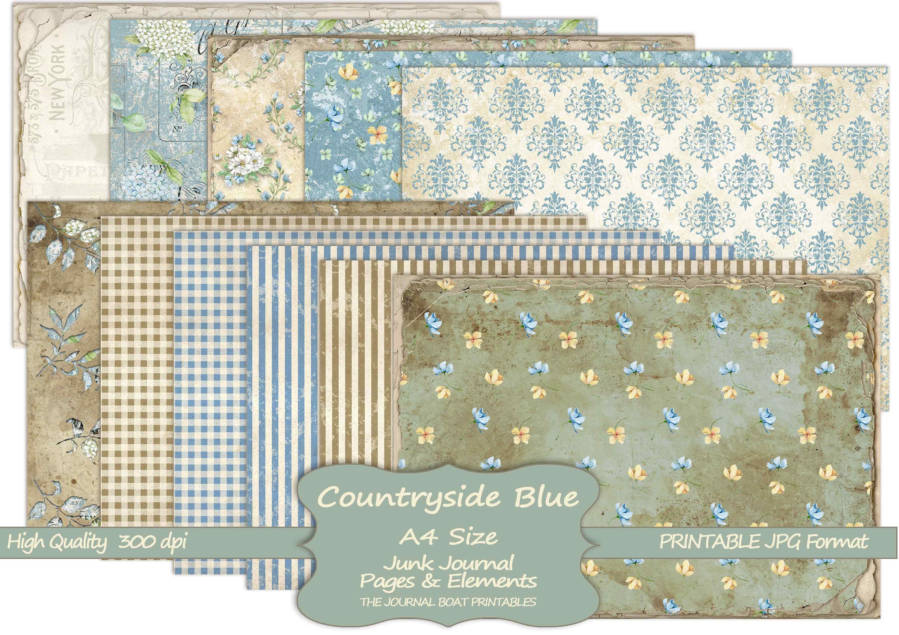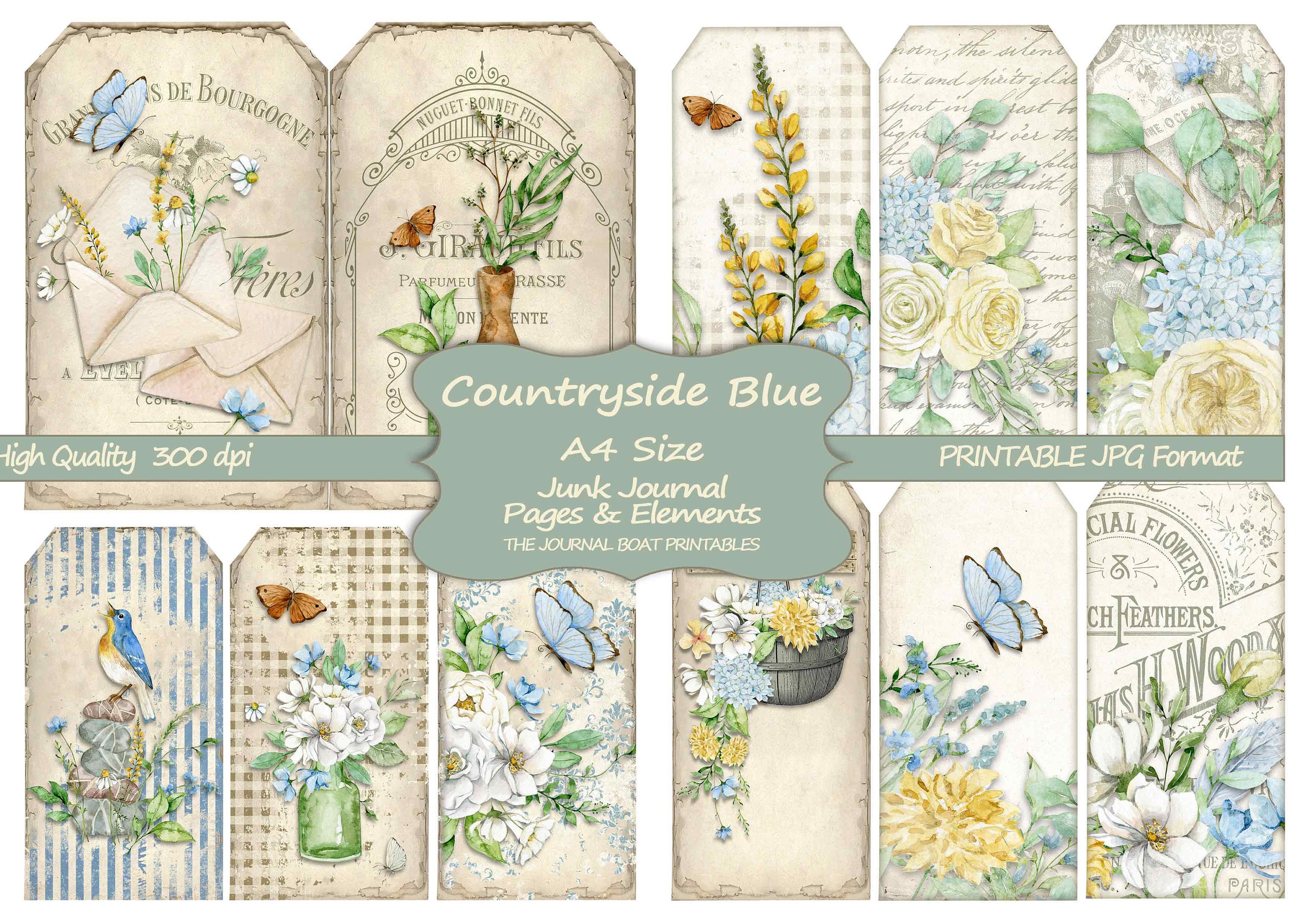 Countryside Blue Junk Journal Kit A4 Size Junk Journal Printable
