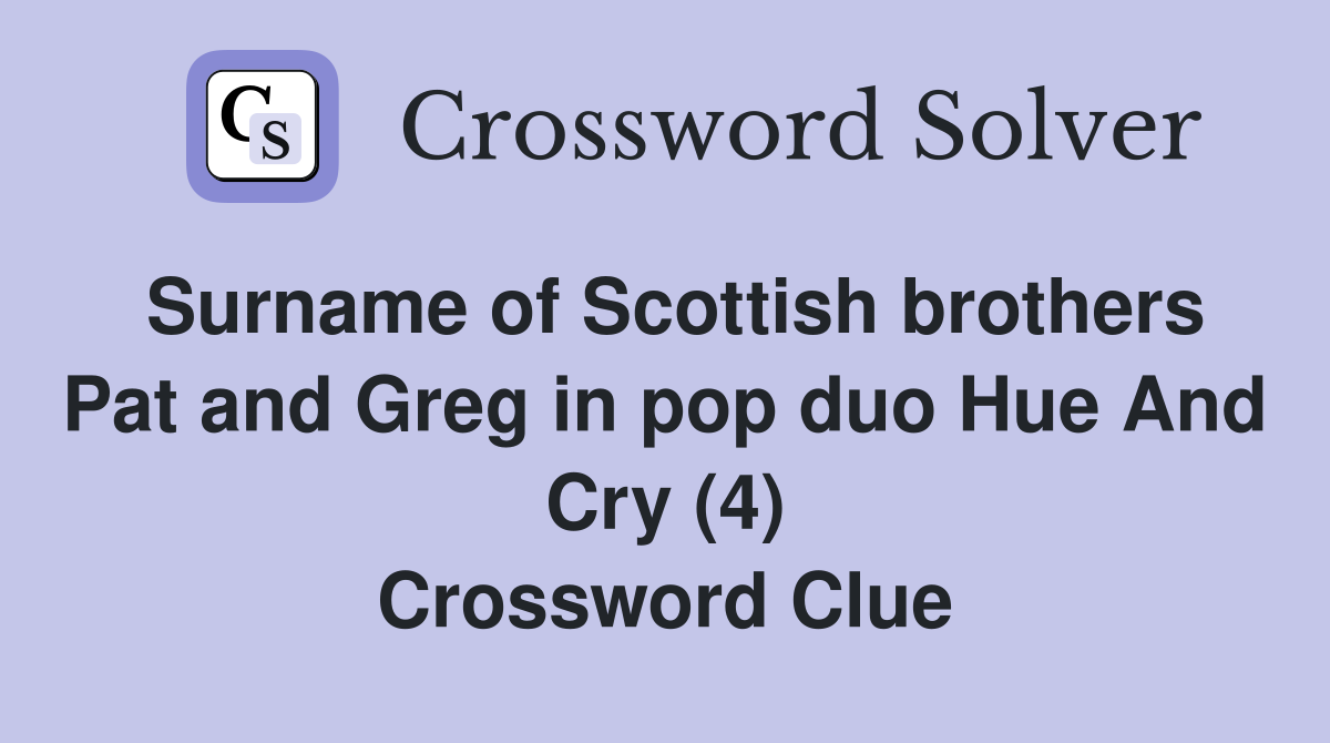 Surname of Scottish brothers Pat and Greg in pop duo Hue And Cry (4