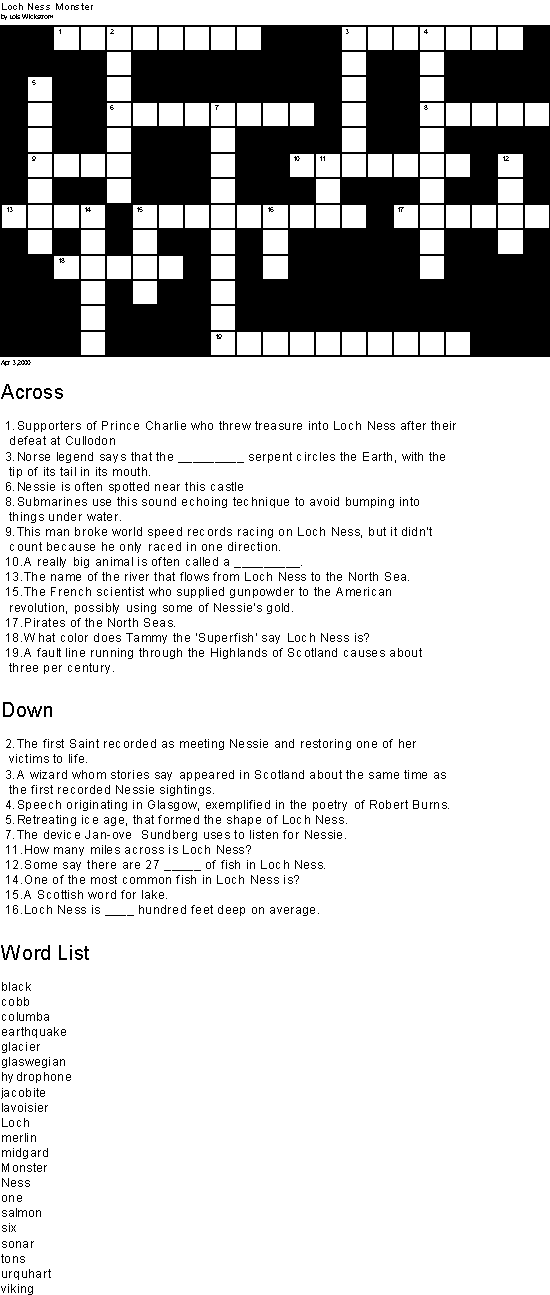 Nessie Crossword Puzzle Nessie #39 s Grotto Lochness Monster