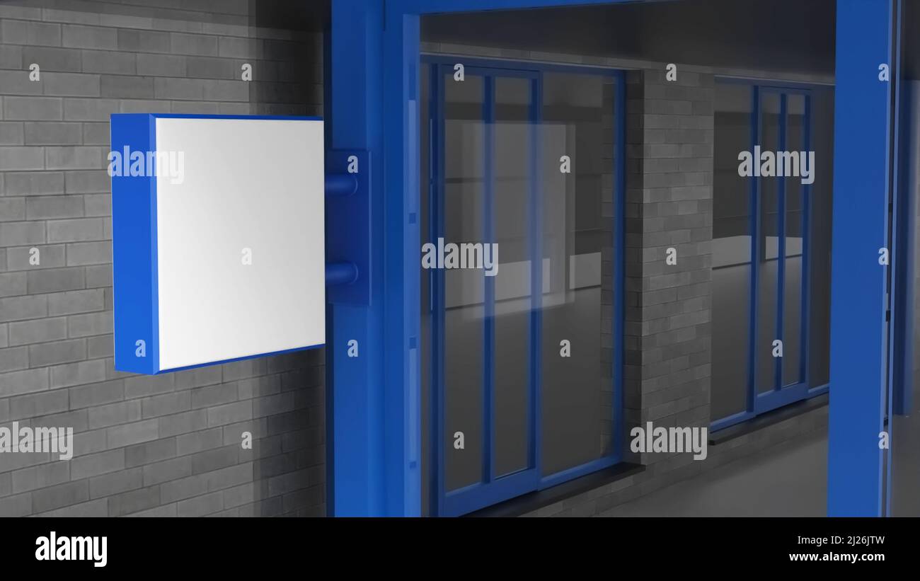 shop sign for blue logo template 3d render illustration Stock Photo Alamy