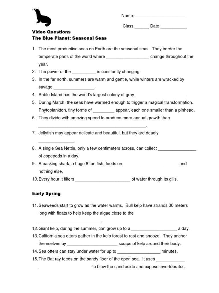 Blue Planet Seasonal Seas Worksheet Answers Printable Calendars AT A