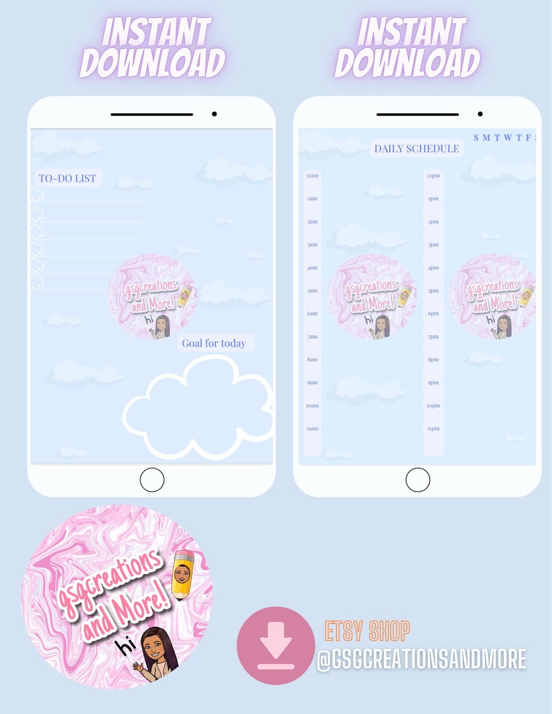 Blue Sky Daily Schedule Planning Etsy