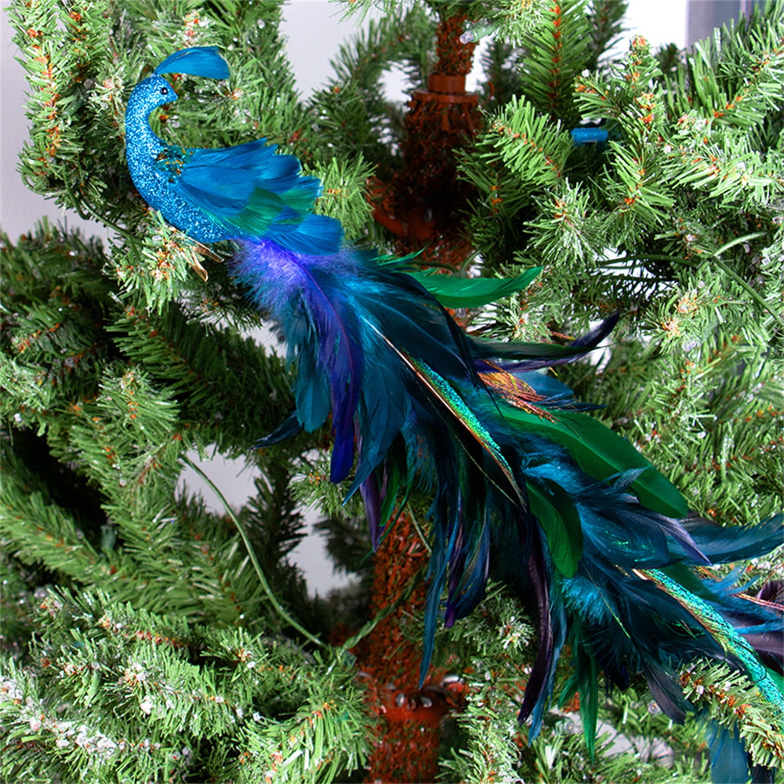 18 Inch Blue Decorative Feather Peacock with Clip Closed Tail with