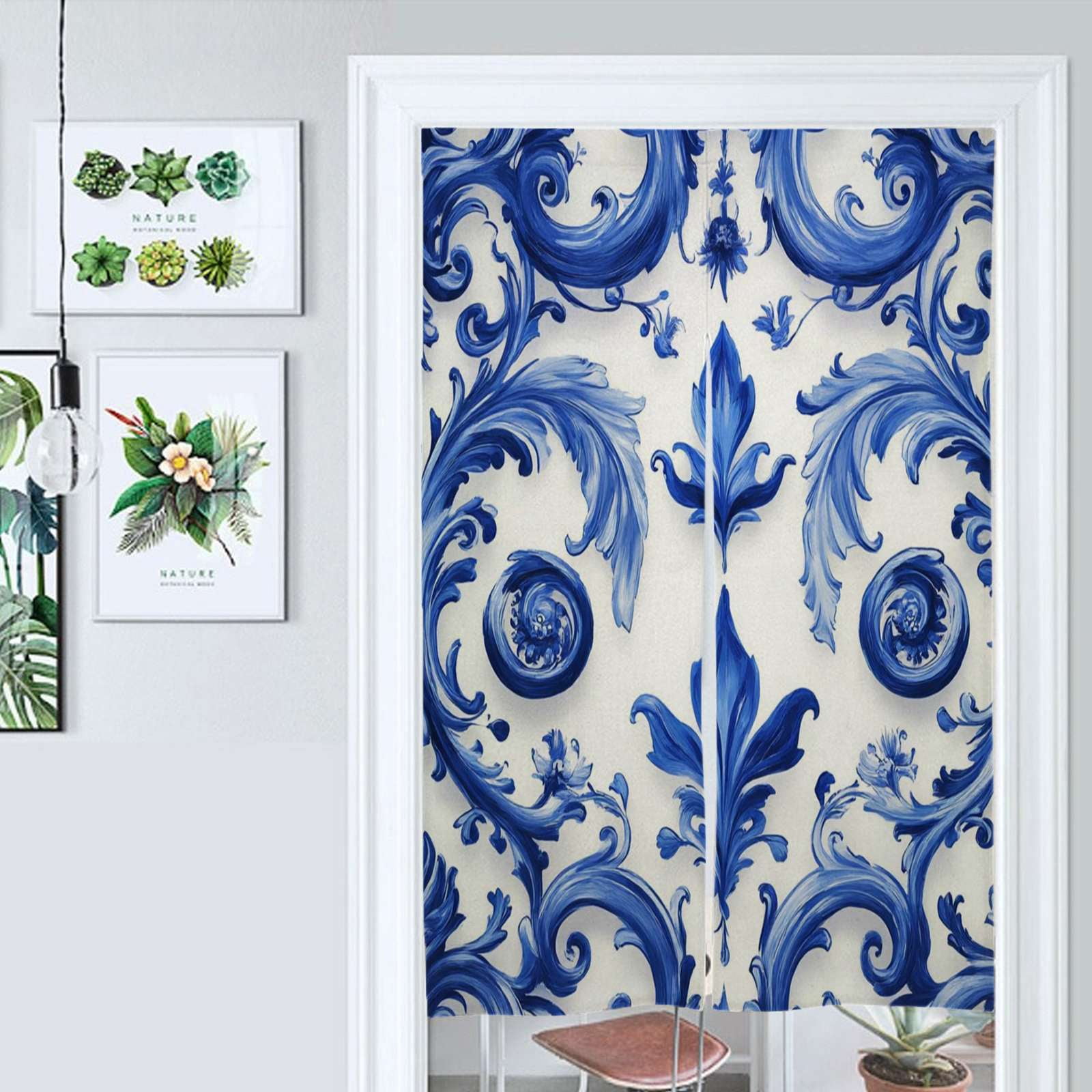 Blue Baroque Floral White Door Curtain Nordic Living Room DoorCurtain