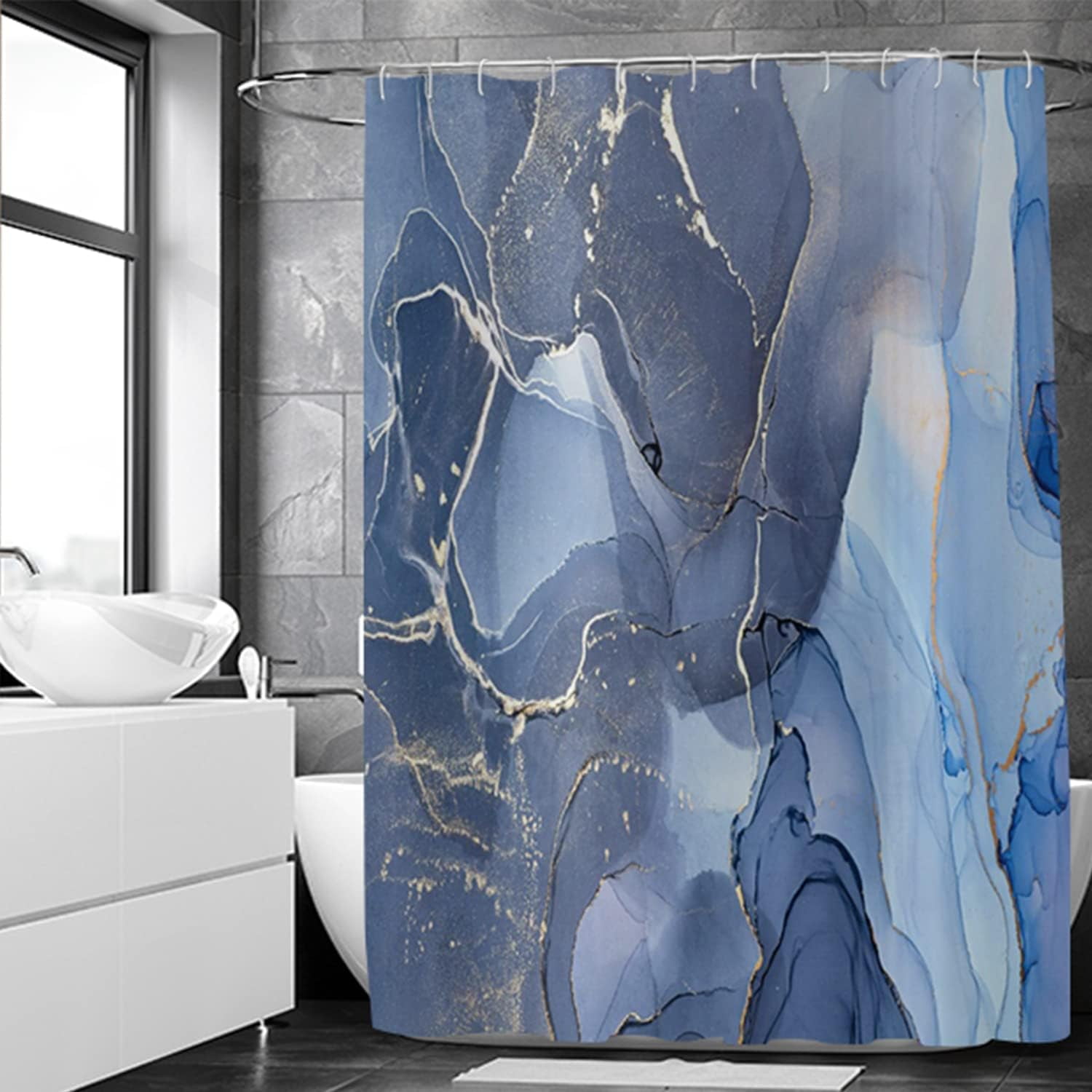 Blue Marble Shower Curtain Blue Mixed GoldMarble Texture Modern