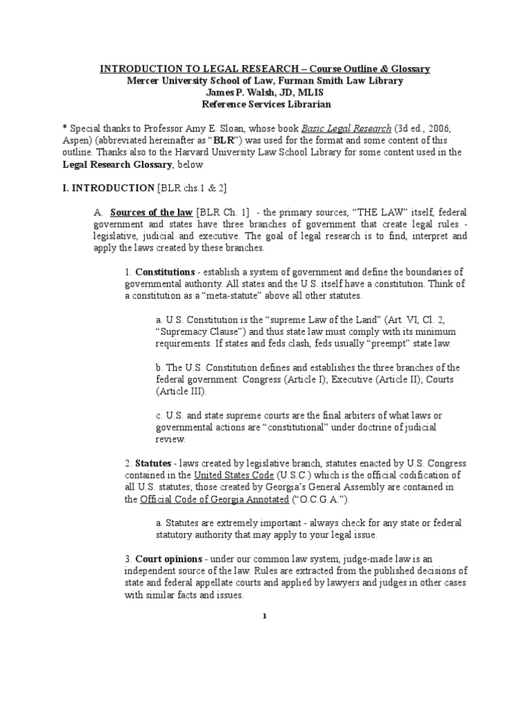 Introduction to Legal Research Outline Case Citation Supreme Court